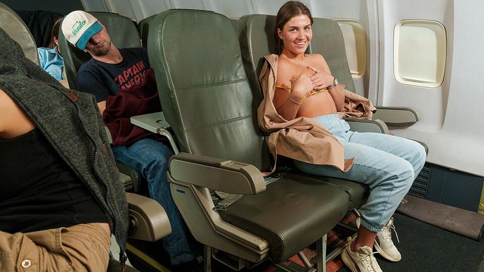 Description:The image of a woman flying all alone is a symbol of freedom, independence, and power. So go ahead and spread your wings, ladies. Or in Sara's case, spreading her legs and rubbing her pussy. The sky is the limit!