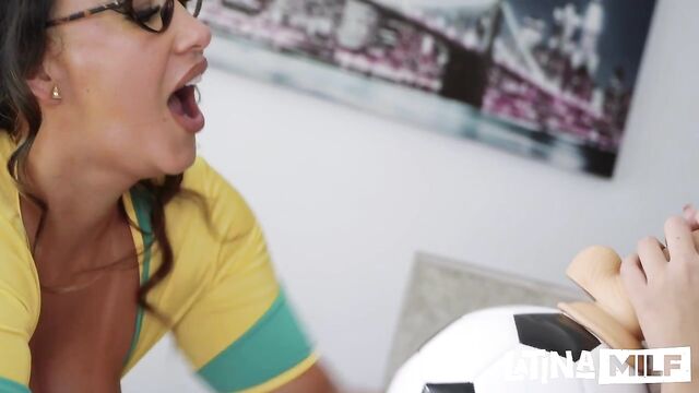 Description:Get ready for a match-day like no other! Tommy Cabrio is pumped for the big soccer game, but his girlfriend Sara and her sultry stepmom Lapaisita have other plans. As Sara tries to tempt Tommy away from the TV, Lapaisita takes it to the next level with some filthy soccer-themed teasing. It's not long before Tommy's attention is fully redirected... and his raging hard-on is getting all the attention it needs. But Sara's not one to be left on the bench - she joins the game, and the three of them score big time in this hot threesome! The Colombian beauties bring the heat, and Tommy's cum eruption is the ultimate goal. Don't miss this wild, intense, and totally uncalled-for encounter that will leave you begging for overtime. Ass fucking, dildo play, 2 pairs of big tits and so much more - here everyone is a winner!