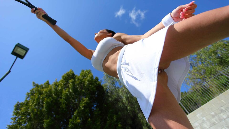 Description:Keiran has been teaching Jessica how to play tennis for the past few weeks and today they are playing a match. After some intense playing, Jessica beats her teacher. Keiran is very sad and the only way he can gain back his spirits is having Jessica suck and fuck his dick.